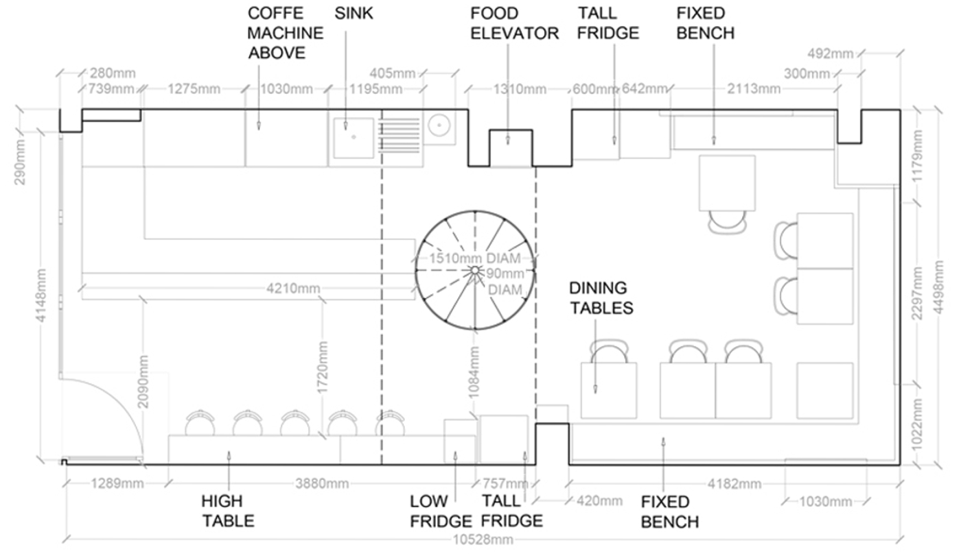 This project involved the redesign of a wine bar's ground floor and basement in North London, focusing on maximizing the use of limited space. The client requested the integration of new elements, including rotating tables and stools, to enhance functionality. The design primarily incorporated cast iron and other metal elements, aligning with the client's ownership of a metal fabrication facility. The existing cast iron staircase was seamlessly integrated with the new design elements. In the basement, artificial plants were introduced to create a welcoming and inclusive atmosphere.