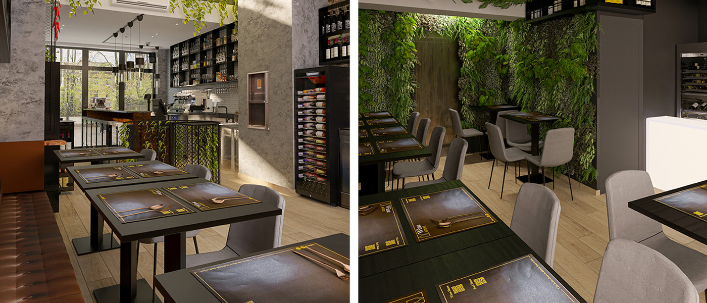 Outcome: A functional and inviting wine bar with efficient use of space and a cohesive design aesthetic